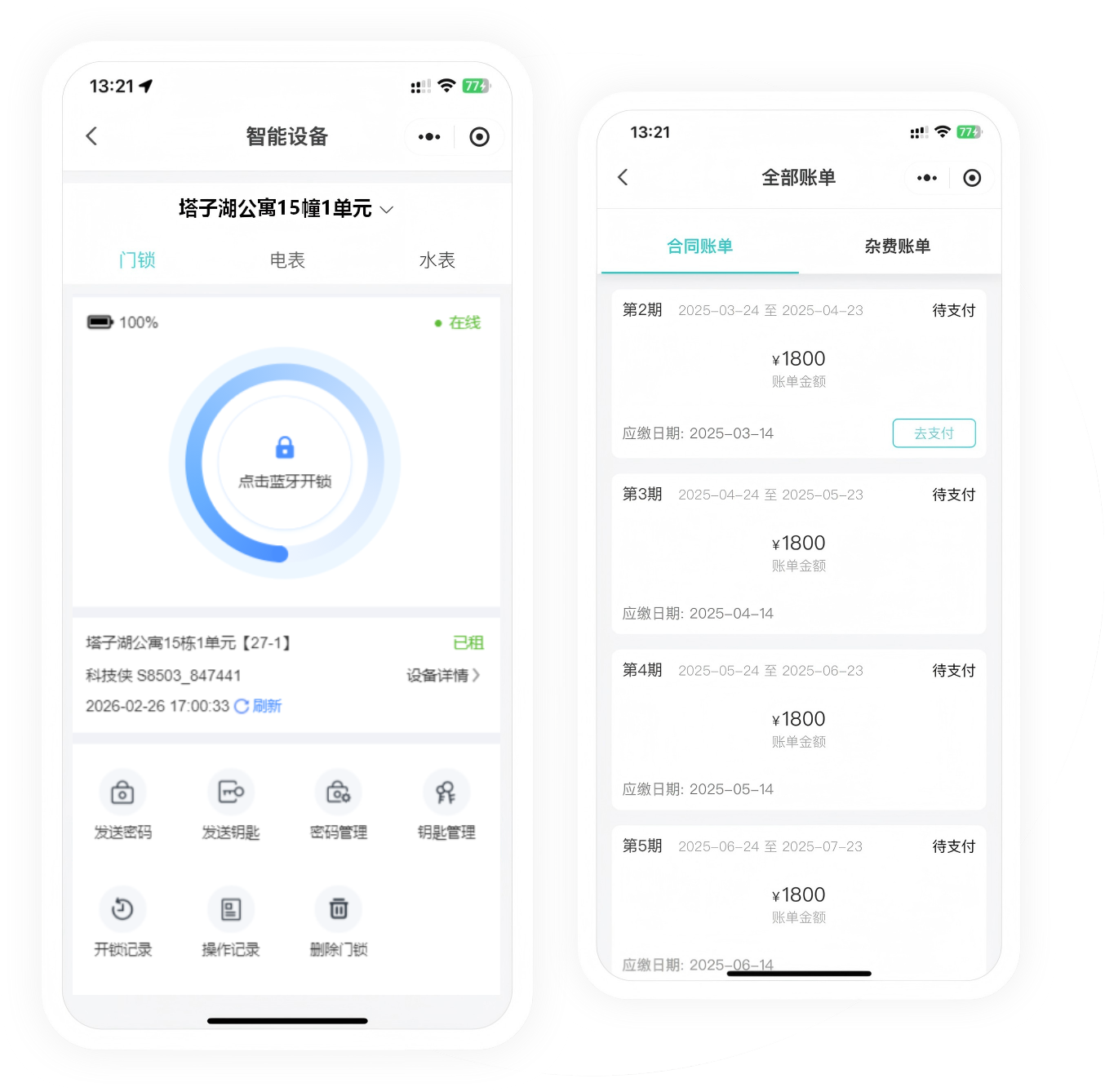租客小程序,是开启理想租住生活的智能钥匙。它为租客打造一站式便捷体验,在线签约合同,流程简便且安全合规;租金、水电费一键缴纳,轻松搞定。智能门锁关联,可随时修改密码,保障居住安全,无论是日常缴费,还是签约入住,一切尽在指尖。让租房生活从此摆脱繁琐,畅享高效、智能、无忧的全新体验,重新定义品质租住。